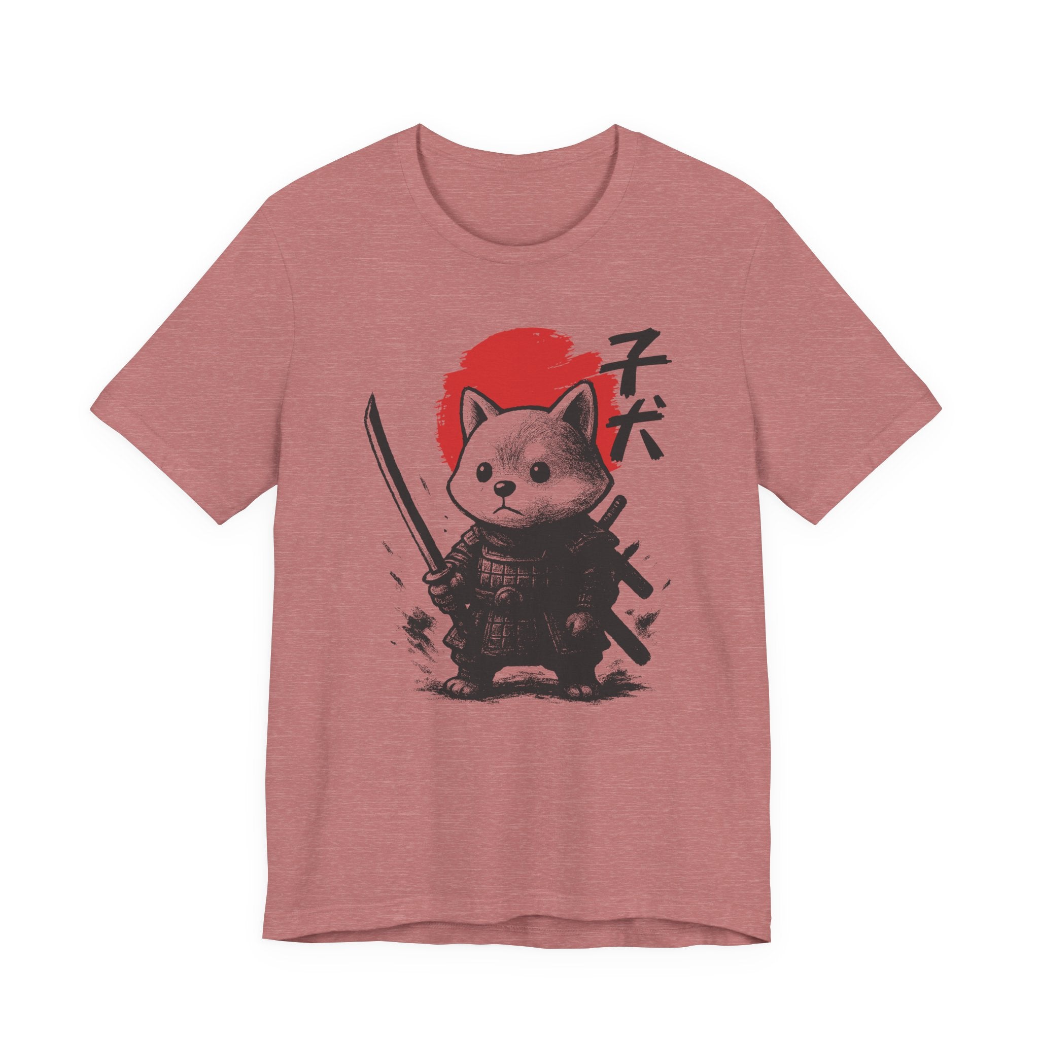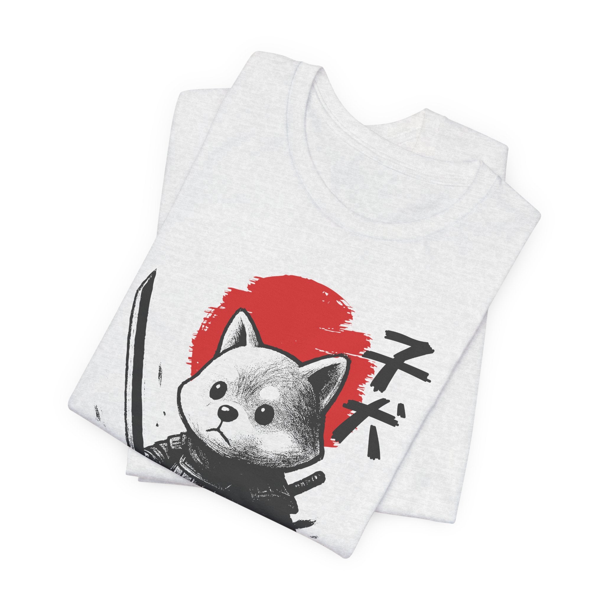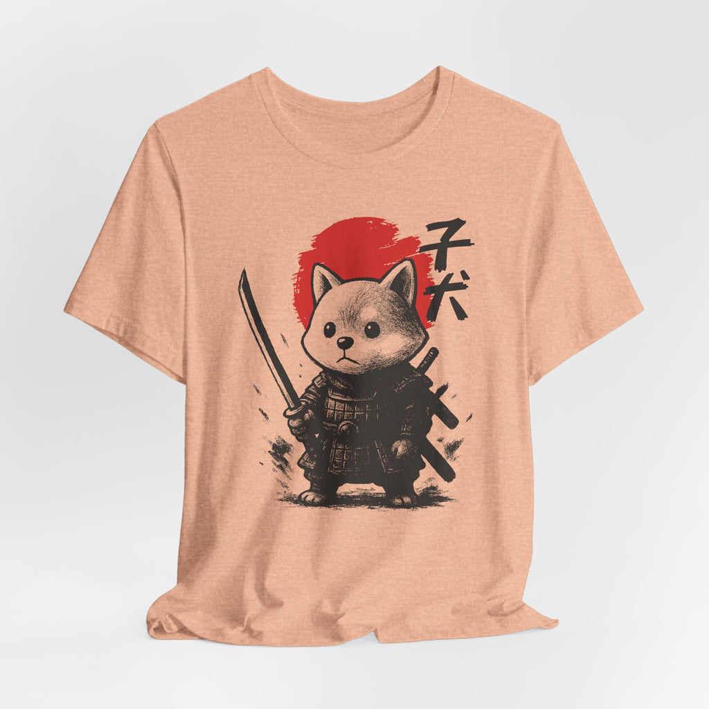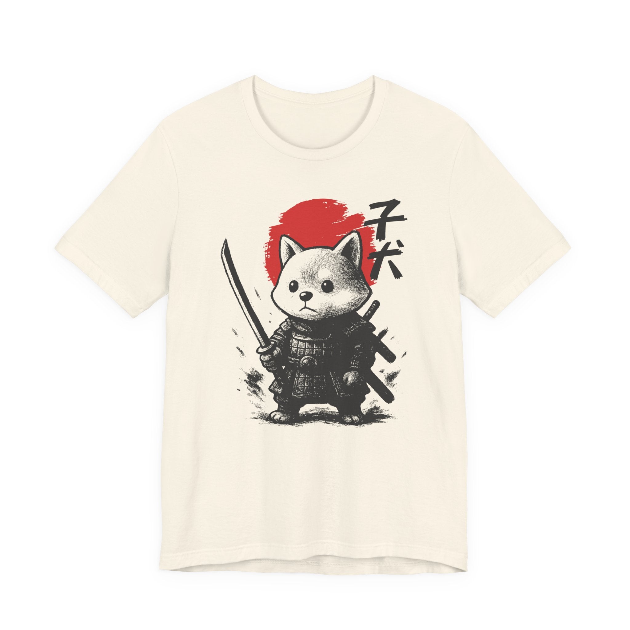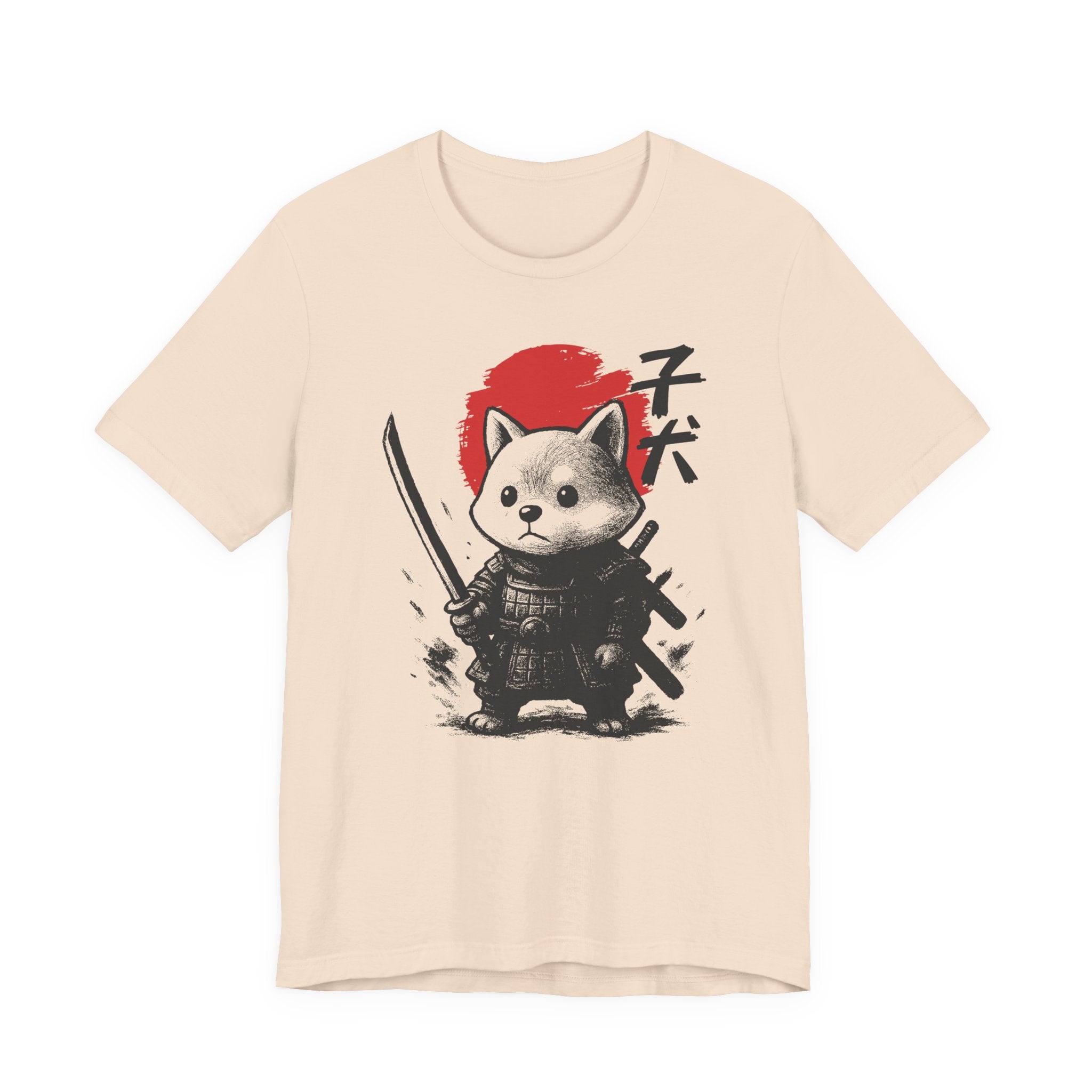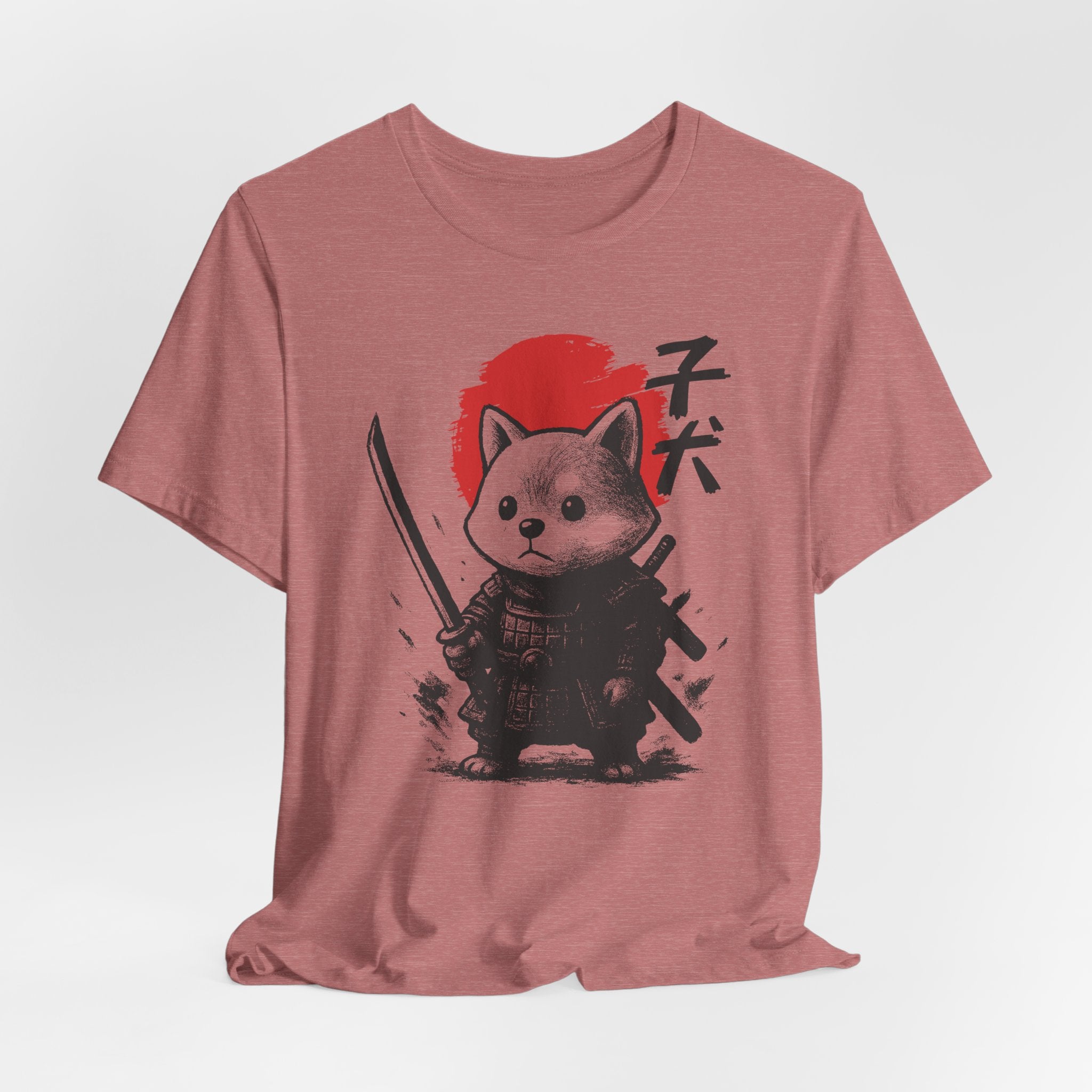 A lightweight, breathable tee that brings playful samurai charm to everyday wear. The front shows a detailed, ink-style illustration of Baby Doge in samurai armor set against a bold red sun — a balance of cute and fierce that reads both modern and timeless. Soft Airlume combed cotton and a retail crew neckline keep the fit clean and comfortable for layering or standing alone. Wear it to express quiet confidence, whether you’re roaming city streets, meeting friends at a cafe, or settling in for a relaxed game night.