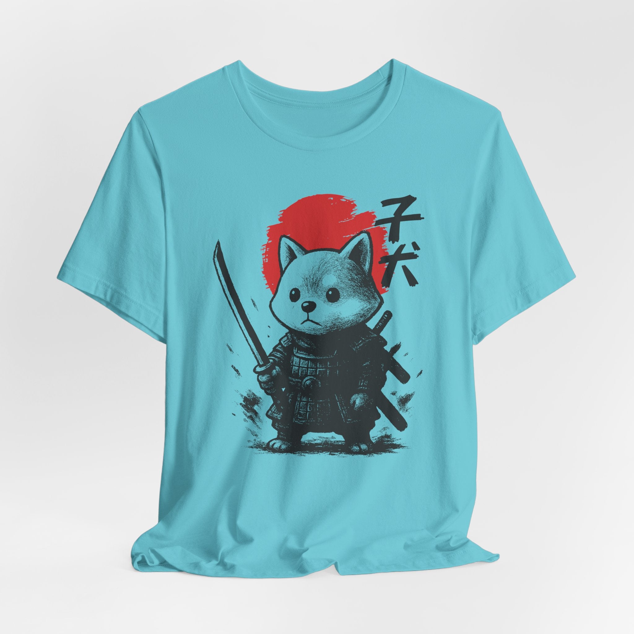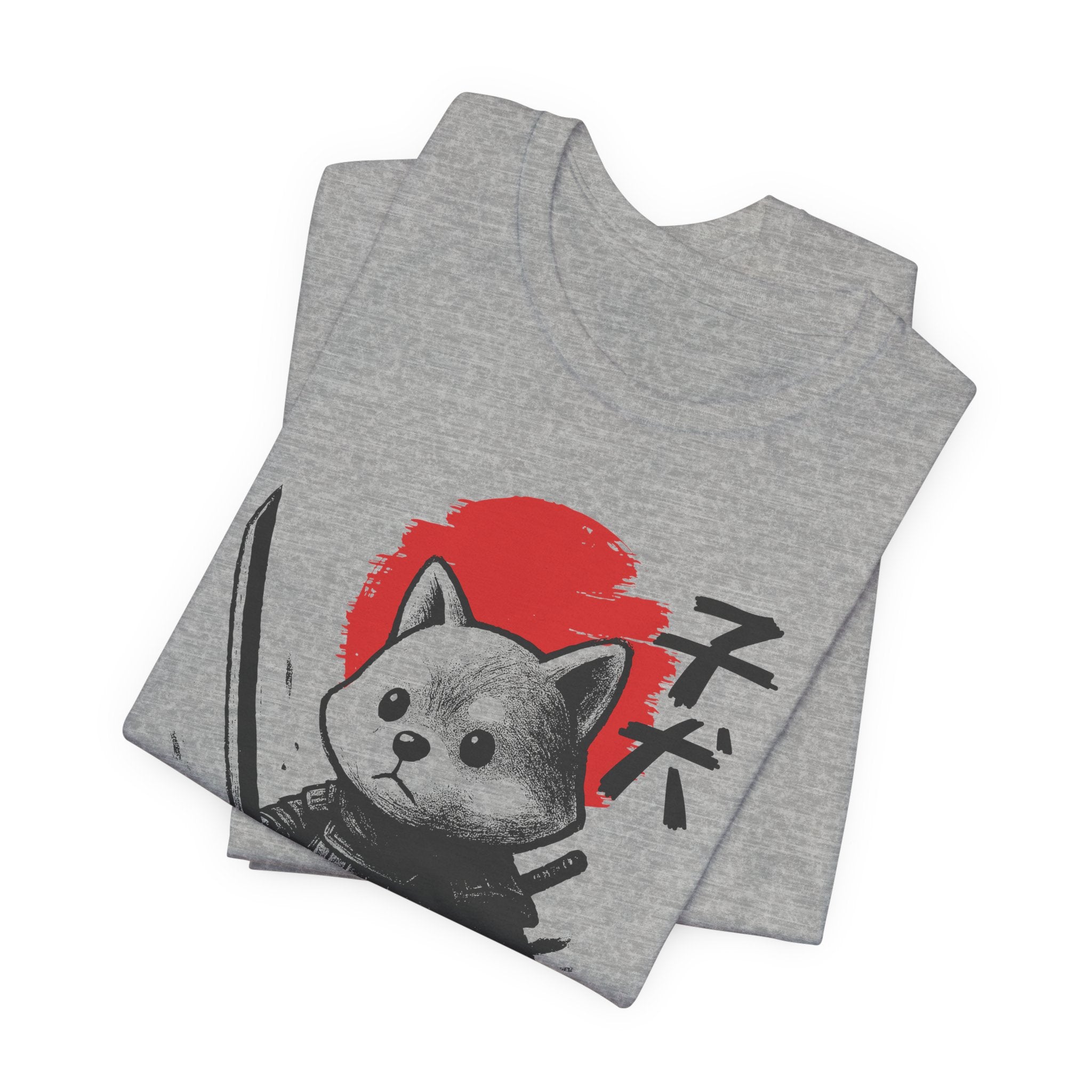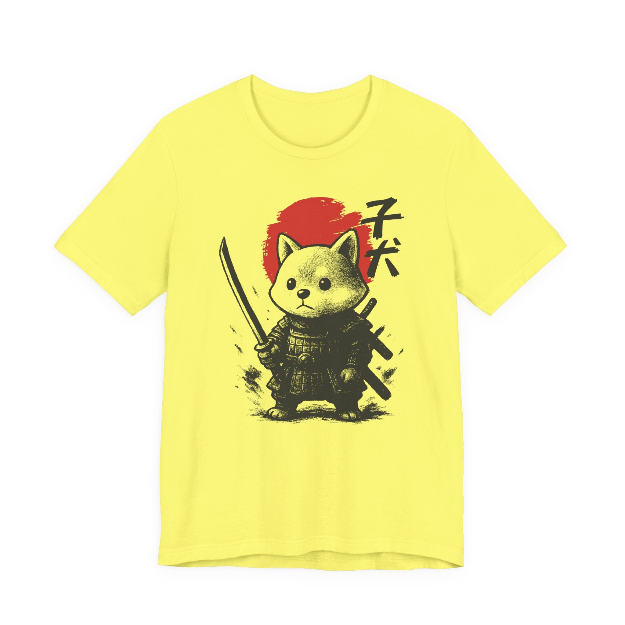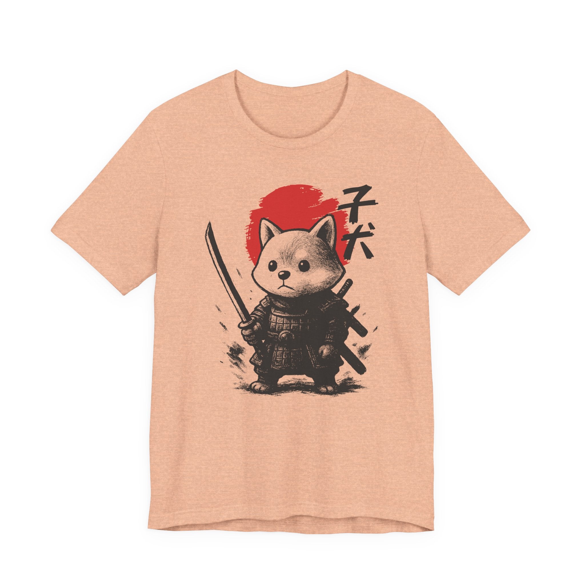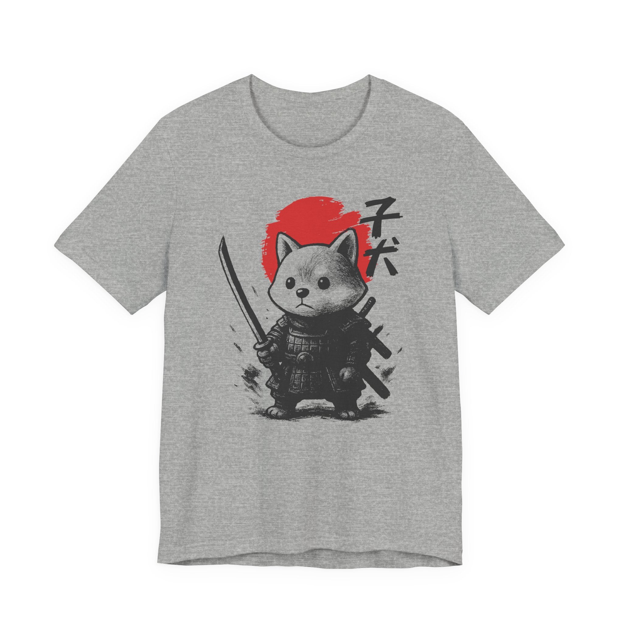 A lightweight, breathable tee that brings playful samurai charm to everyday wear. The front shows a detailed, ink-style illustration of Baby Doge in samurai armor set against a bold red sun — a balance of cute and fierce that reads both modern and timeless. Soft Airlume combed cotton and a retail crew neckline keep the fit clean and comfortable for layering or standing alone. Wear it to express quiet confidence, whether you’re roaming city streets, meeting friends at a cafe, or settling in for a relaxed game night.