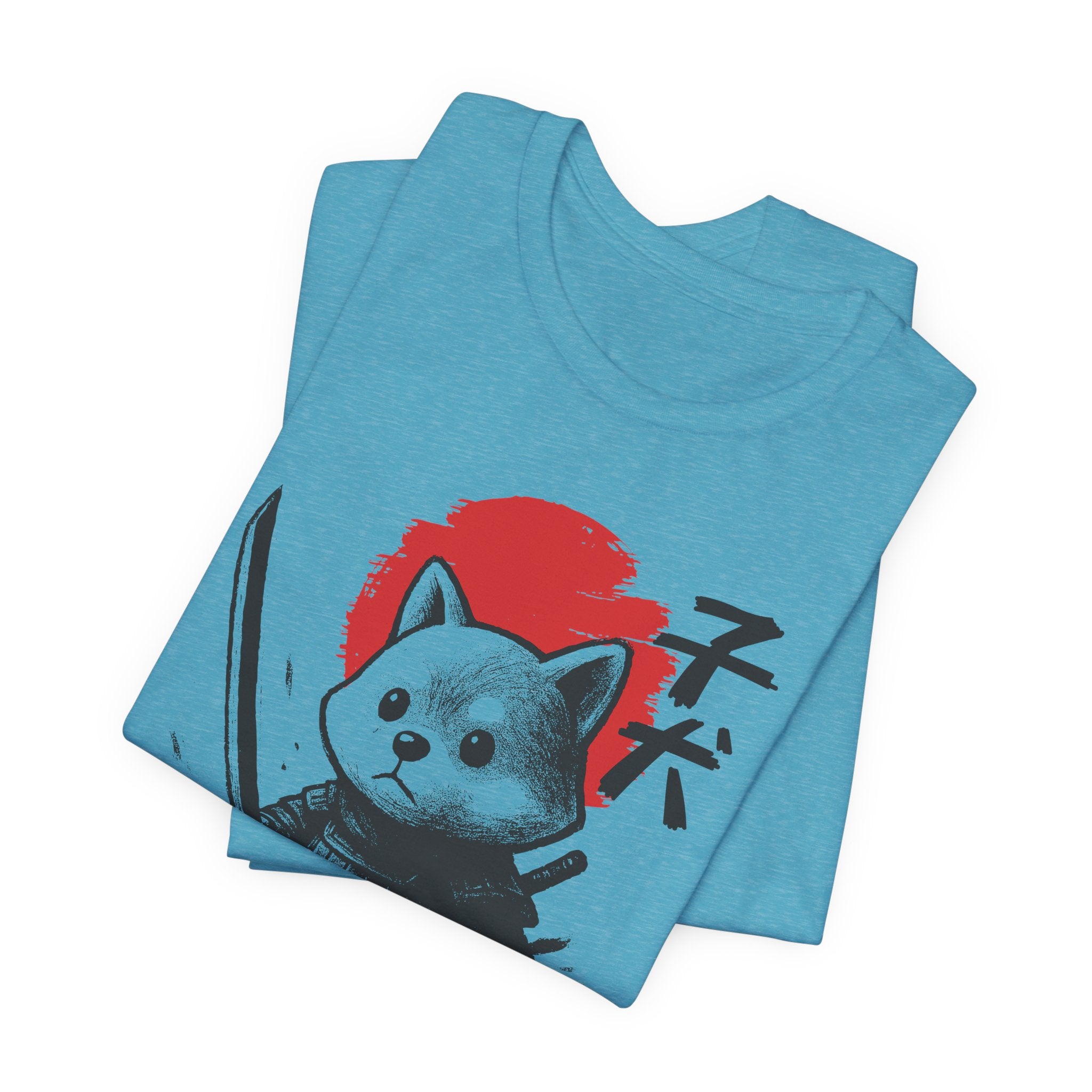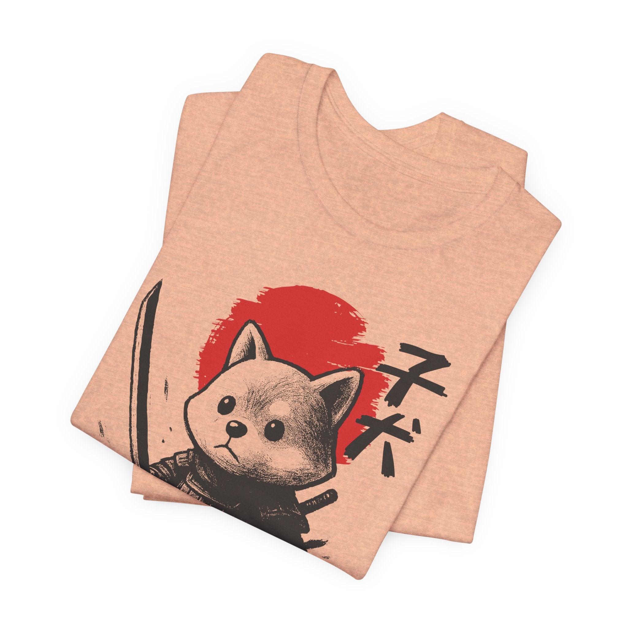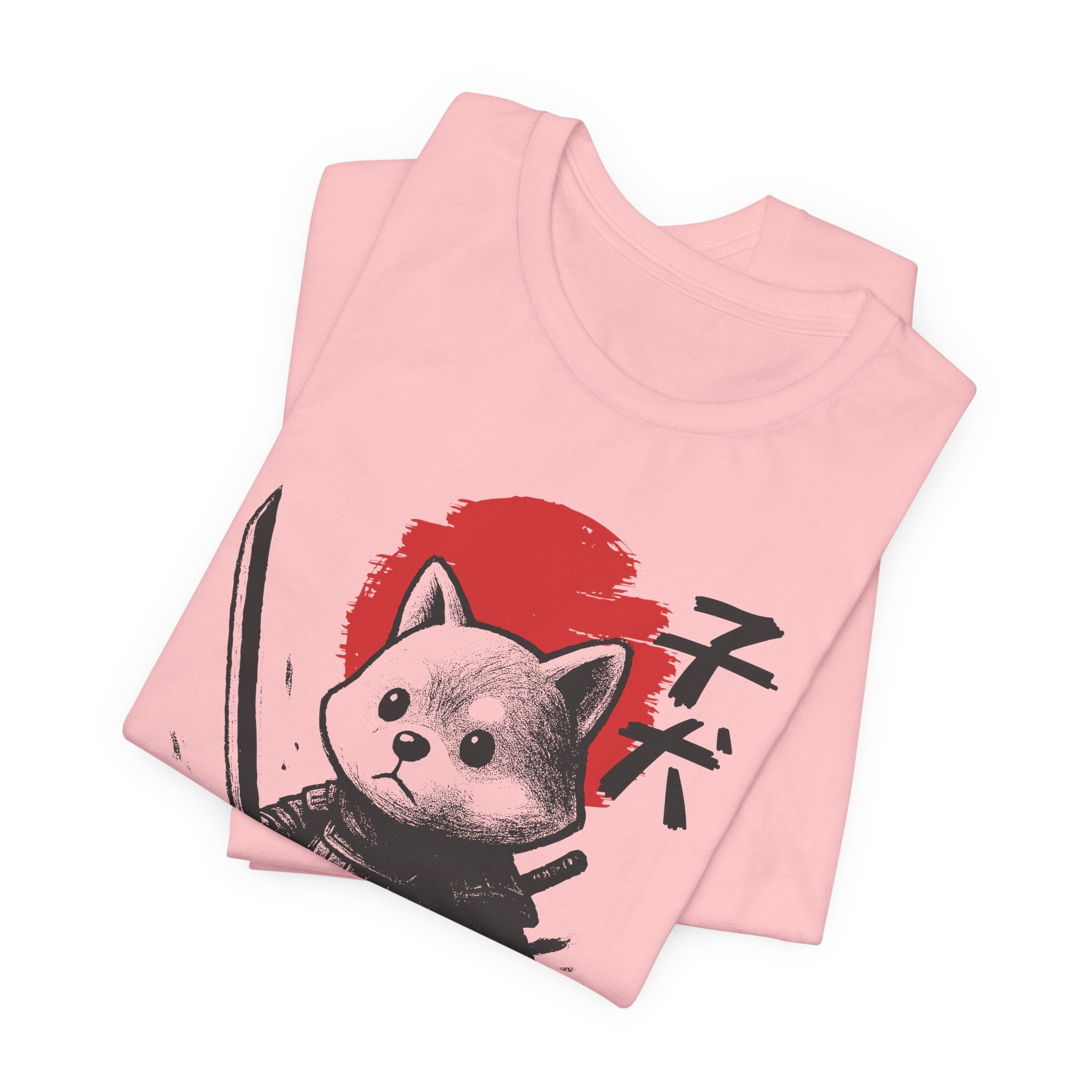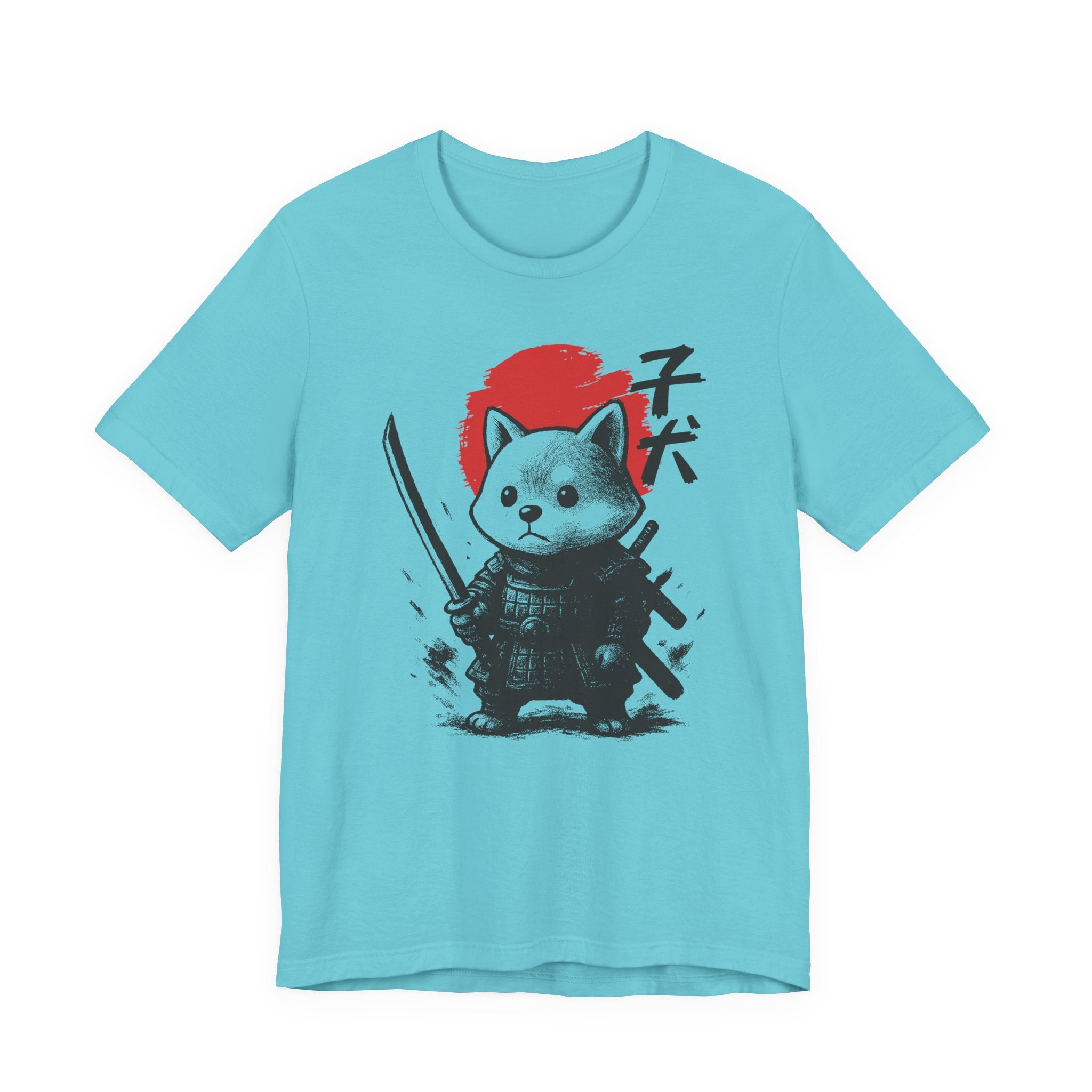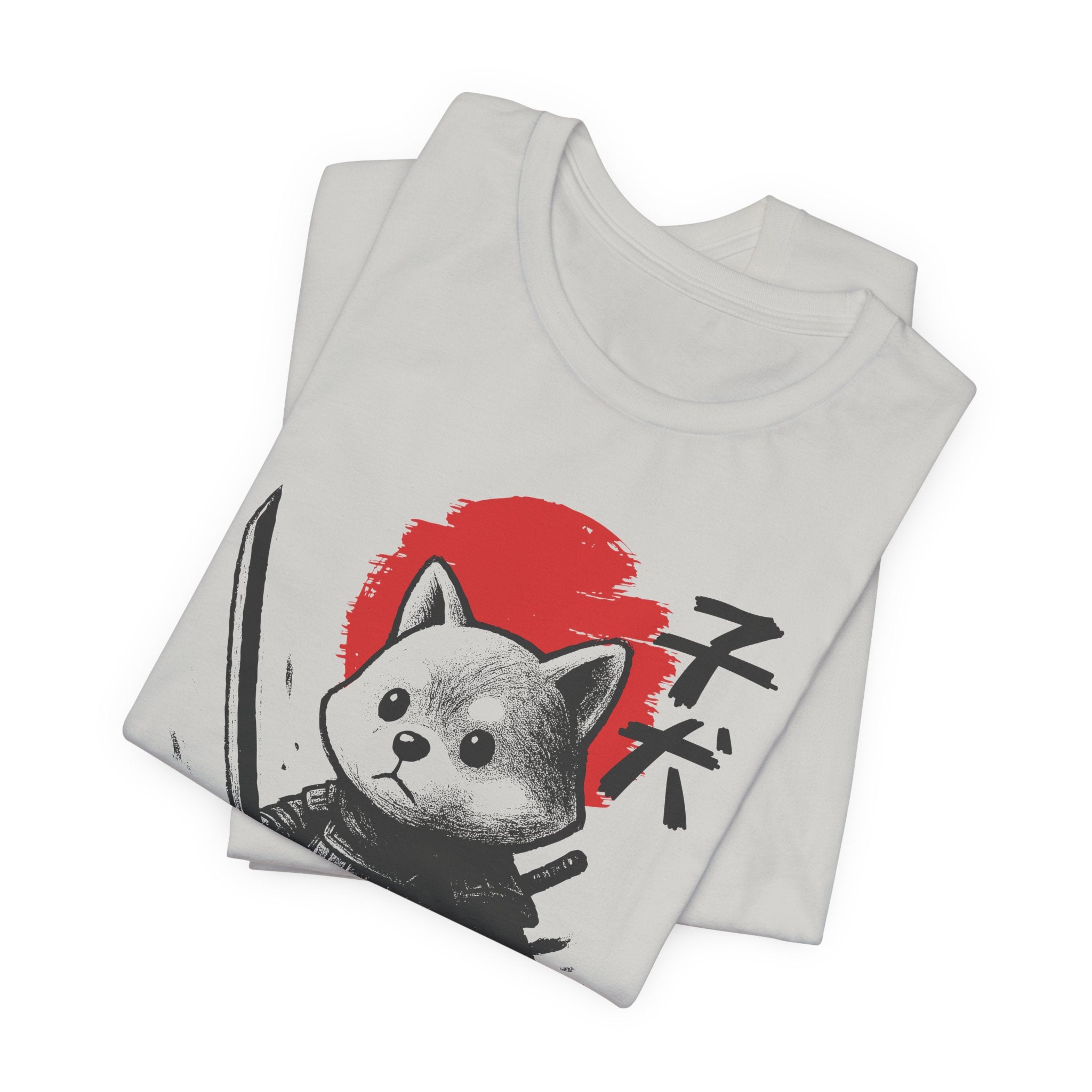 A lightweight, breathable tee that brings playful samurai charm to everyday wear. The front shows a detailed, ink-style illustration of Baby Doge in samurai armor set against a bold red sun — a balance of cute and fierce that reads both modern and timeless. Soft Airlume combed cotton and a retail crew neckline keep the fit clean and comfortable for layering or standing alone. Wear it to express quiet confidence, whether you’re roaming city streets, meeting friends at a cafe, or settling in for a relaxed game night.
